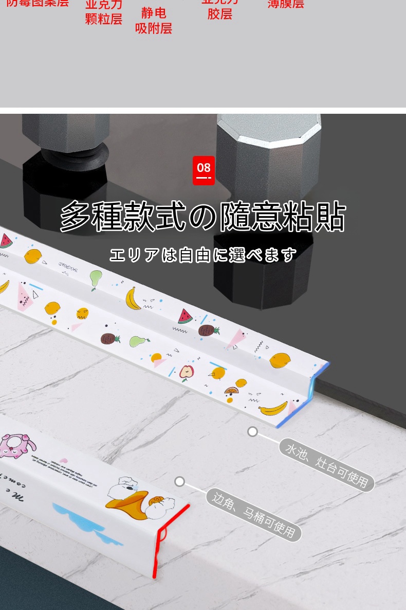 半小時前限時搶購 美縫貼防水防霉廚房水槽洗碗灶台封邊擋水條,衛生間馬桶邊緣縫隙貼 - 【98%客戶的選擇】5入組-NT$1150