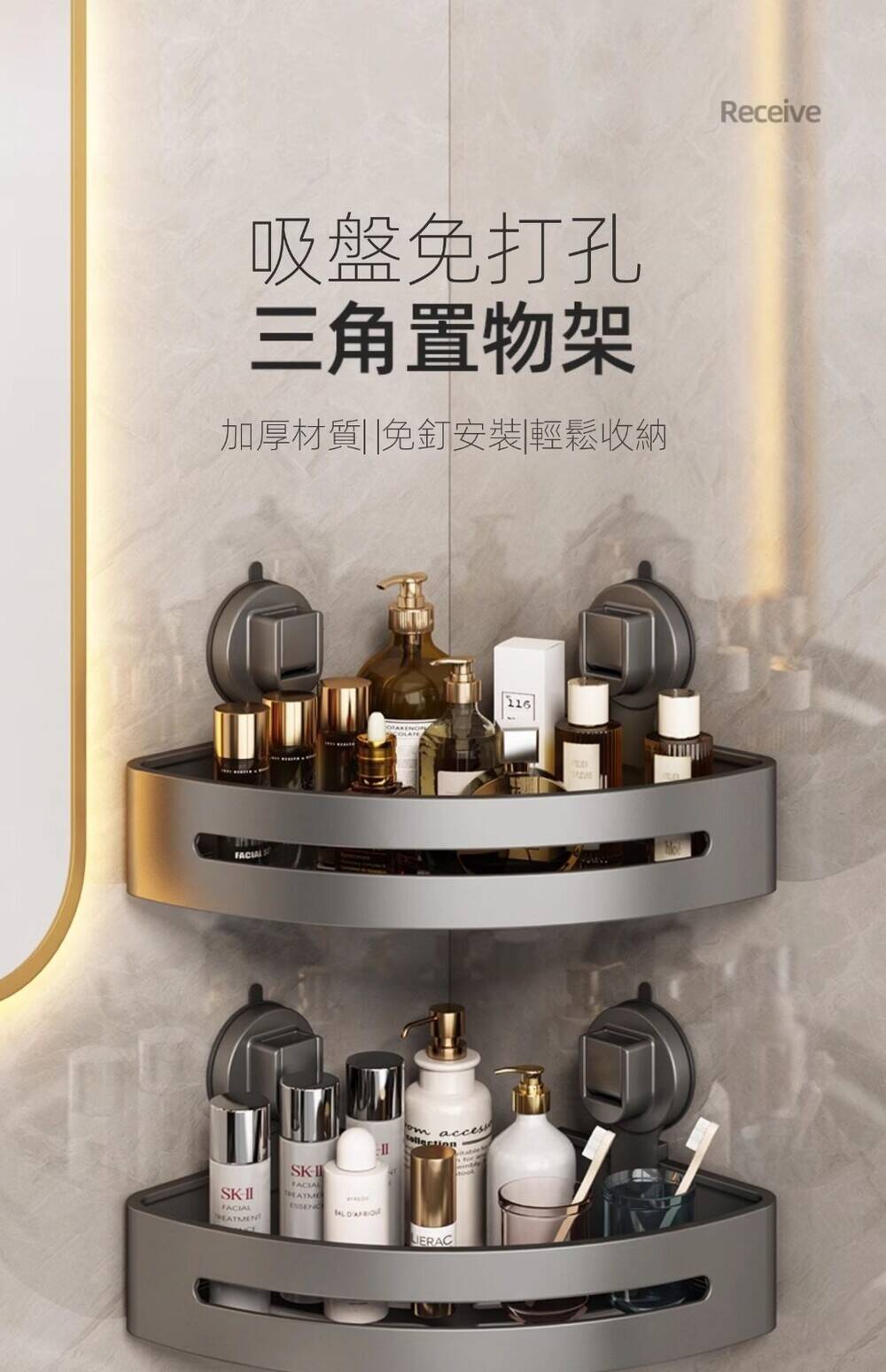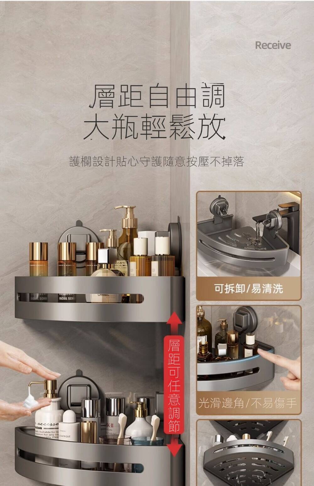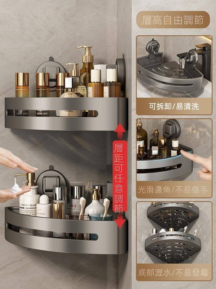 5分鐘前自帶吸盤,可隨時移動重復使用的置物架 免打孔廚房浴室衛生間三角置物架多用途壁掛收納架毛巾架 - 【超夯下殺】買一送二,共三入組 NT$999